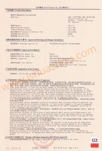 船用空气瓶工厂认可证书